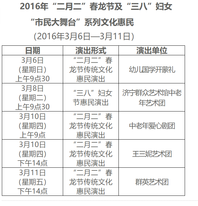 2016年“二月二”春龙节及“三八”妇女节“市民大舞台”系列文化惠民